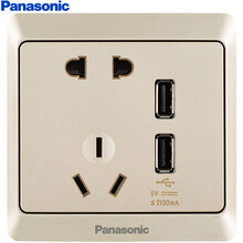 松下( Panasonic)开关插座 五孔双USB插座面板 10A5孔USB墙壁插座 雅悦香槟金 WMWA654Y-N