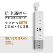 QAYNN千云锂抗浪涌触控防雷排插插线板抗电涌创意原创设计收线带USB插座一线多用超薄小插头 1.8米3插带USB触控防雷防浪涌