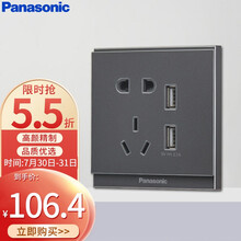 松下( Panasonic)开关插座面板 五孔电源插座面板 带双USB插座墙壁面板 悦皓 云碳灰 WMWF654MYH