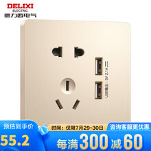 德力西(DELIXI)开关插座金色CD821纯平大板无框86型开关电源插座墙壁面板插座 双USB五孔插座