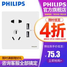 飞利浦PHILIPS昕绎五孔插座带usb面板插座usb插座usb插座面板usb面板带usb插座面板 昕绎白色五孔带USB