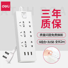得力(deli)插座新国标接线板插线板安全门保护办公家用拖线板 带USB 18283(6组合+3USB2米线)