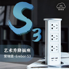 爱瑞堡升降插座岛台嵌入式插排S3气动无线充电隐藏式接线板厨房电源 s3气动【纯雅银】3位插孔+USB