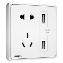 西门子开关插座 灵蕴系列五孔带智能快充分流双USB墙壁插座 3.1A 18W快充 晨曦白