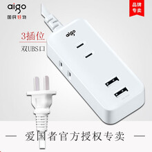 爱国者(aigo)新国标插座两项插头2头脚孔插排插线板二角插板带线多功能家用宿舍带USB充电插电板 3插孔 2USB 全长2米