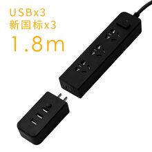 夏叶 多功能插座带USB充电转换器智能排插宿舍学生多用插线板插排 黑色(3插+USB)1.8米