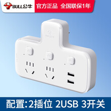 公牛厨房插座拓展电源插头转换器家用多开关分控插排查无线多功能插线板多用拖线板多孔面板分插器 GN-96023U 一转二+2USB【品字分控】