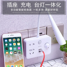 夏叶 插座LED台灯家用排插转换器带USB多功能小夜灯卧室床头节能台灯 【带安全门旋转调节台灯+双USB快充】