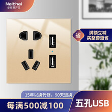 纳普华帝斯(Nalthai)开关插座86型玻璃面板墙壁单开16A插座暗装点开关 晶点金色系列 五孔USB(真正玻璃面板)