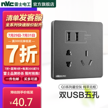 【清单报价】雷士开关插座面板 86型16a10a正三五孔一开单双控空调墙壁面暗装插座Q3心悦星空灰色 双USB五孔插座