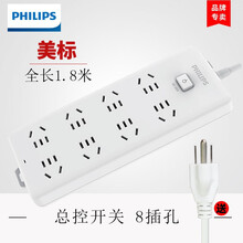飞利浦插排美标插座插线板转换插头美国加拿大巴西菲律宾 美标 总开关 8插孔 转换插头 全长1.8米