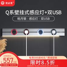 优必克 Q系列壁挂式皓月银电力轨道插座可移动明装插线板多功能电源插座带感应灯+双usb 400毫米+2粒磨砂适配器插头