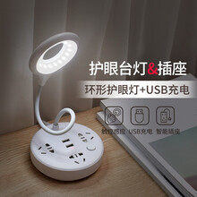 创意多功能插座台灯智能插座USB拖线板LED充电插板带线插排插线板延长线多用接线板家用3米5米插电板 【触控台灯插座】3位+2usb 白色0.8米