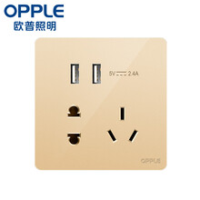 欧普照明(OPPLE)开关插座面板家用暗装墙壁USB五孔插座纯平圆角86型墙式开关 k12金色 USB五孔插座