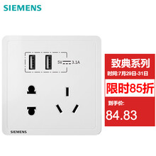 西门子(SIEMENS)开关插座面板 五孔插座二三插 强电电源墙壁插座大面板 致典白色 五孔插座带USB