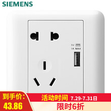 西门子五孔插座二三插西门子开关插座面板 皓睿系列玉釉雅白色 USB五孔