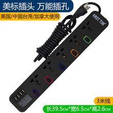 插座 排插 插排 港版英标插座英规排插美标多用转换器香港插板英式电拖板13A 3米线美标插头5个孔4个USB