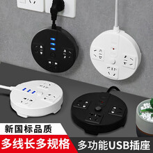 吉丁 usb插座多功能插排学生宿舍带线创意排插圆盘五孔插线板带安全门接线板总控开关拖线板桌面插板 圆盘-普通款-3插位 白色-无线