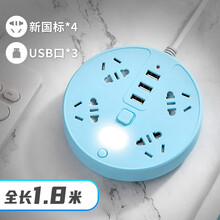 创意多功能usb插座带开关夜灯电源排插线板多用插排插板带线爬墙可爱圆形永得信接线板 YD圆带USB 天空蓝 1.8米
