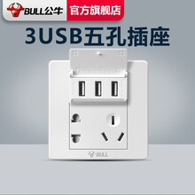 公牛开关插座/面板/10a五孔/大功率空调/86型暗装/电源5孔/USB/网线/网络/G07白 三位USB五孔