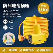 戴利普 插座电动车充电线插线板长线插排5米接线板10米拖线板15米电源延长线20米户外电插座30米 防摔地拖插座 4插位14孔 10米(1.5平方)