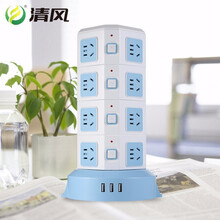 清风立式插座4层16插位智能USB手机充电器插座 创意塔式接线板家用多功能立体插排插线板 3米/带USB充电/带过载保护