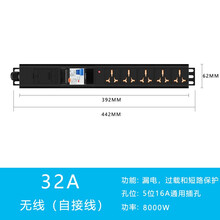 大功率排插座32A63A80A8000W空气开关漏电保护工业无线接线板 5位插孔32A漏保无线 8000W