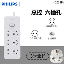 飞利浦英式插排英标转换插头插排插座转换器英国新加坡马来西亚 英标2633 总开关 6插位 全长3米