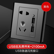 国际电工 开关插座86型暗装家用usb插座双口2.1A快充带开关墙壁5五孔带充电插座面板 双USB五孔带开关(黑2A)