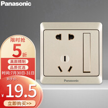 松下( Panasonic)开关插座 带单控开关10A五孔插座一开双控五孔插座 雅悦香槟金 WMWA623Y-N