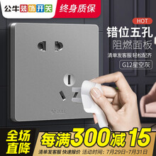 公牛开关插座面板86型斜五孔插座10A墙壁插座墙面多孔多功能二三插电源暗装 G12灰色北欧工业风 G12灰