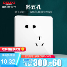 德力西(DELIXI)开关插座面板CD821无框大板白色10A一开五孔16a空调usb插座网络86型 斜五孔插座