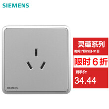 西门子(SIEMENS)开关插座 三孔空调热水器插座面板 86型墙壁插座灵蕴系列星辉银灰色 16A三孔插座