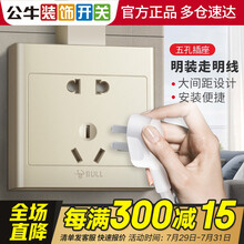 公牛开关插座面板 明装86型墙壁电源插座 五孔插座面板超薄明盒明装开关五孔面板 明装插座