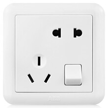 ABB开关插座面板 10A一开五孔带开关插座 德静系列 白色 AJ225
