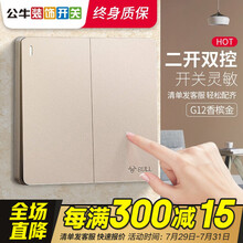 公牛开关插座面板 86型无边框二开双控开关 暗装家用二位双联墙壁电源开关 G12K212/香槟金 G12金
