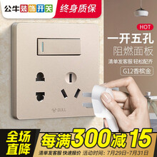 公牛开关插座面板86型墙壁插座墙面金色二三插10a电源暗装带开关一开五孔插座双控带开关 G12/金 G12金