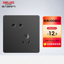 德力西(DELIXI)开关插座面板 CD821系列 10A斜五孔插座 磨砂黑大板