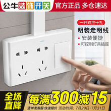 公牛明装开关插座 一开双控开关十孔插座家用明盒超薄明装插座带开关面板G09E636(明装走明线)