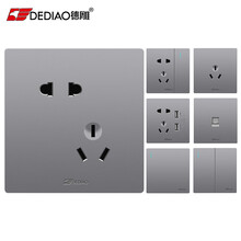 德雕开关插座面板86型家用暗装插座北欧灰色星空灰墙壁双电脑五孔插座开关面板电源5孔USB套装二三插座 斜五孔