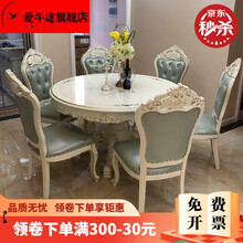 【今日上新】欧式餐桌椅组合 美式实木圆桌简约小户型6人饭桌餐台餐厅成套家具 圆桌