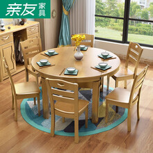 亲友 实木餐桌新中式饭桌长方形餐椅组合可伸缩橡胶木圆桌大小户型吃饭桌子餐厅成套家具 1.38m米实木餐桌 颜色备注
