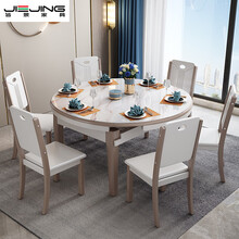 皆景 实木餐桌 现代简约大理石餐桌椅组合岩板餐桌可伸缩折叠家用吃饭桌子大圆桌跳台轻奢餐厅家具 1.5米 一桌十椅 大理石