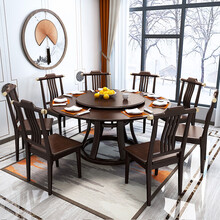 爱惟森 餐桌新中式实木餐桌餐厅家具圆形餐桌椅带转盘组合家用洽谈大饭桌 (带转盘) 一桌六椅