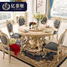 欧式圆餐桌餐组合一桌四椅大理石餐桌餐厅成套家具 全实木1.35米餐桌(人造大理石)