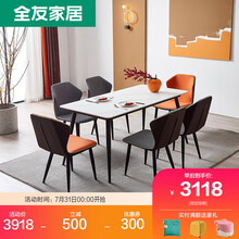 (特)全友家居餐桌椅 简约意式岩板餐桌轻奢客厅餐厅金属框架1.4米1.6米长方形餐桌椅126702 1.4米餐桌B+餐椅A*2+餐椅B*4