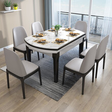 梧浅 餐桌 实木大理石餐桌椅组合现代简约玻钢石台面可伸缩折叠饭桌餐厅家具 玻钢石台面+黑色八角椅 单桌 (1.2米)