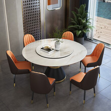 贝创 餐桌现代简约轻奢大理石圆桌椅组合带转盘岩板饭桌大小户型圆型餐桌餐厅家具 B款大理石餐桌(备注颜色) 1.3米单桌