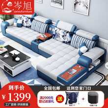沙发布艺沙发贵妃组合现代简约沙发客厅大小户型多功能实木框架皮布组合沙发整装客厅家具 海绵款(颜色请留 海绵款 两件套(双+贵)2.4米+茶几电视柜