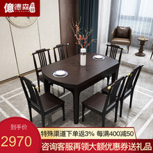 亿德森 新中式实木餐桌椅组合方圆两用家用轻奢简约现代长方形餐厅家具吃饭桌 一桌六椅 602#1.38米